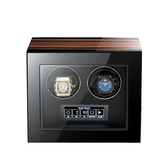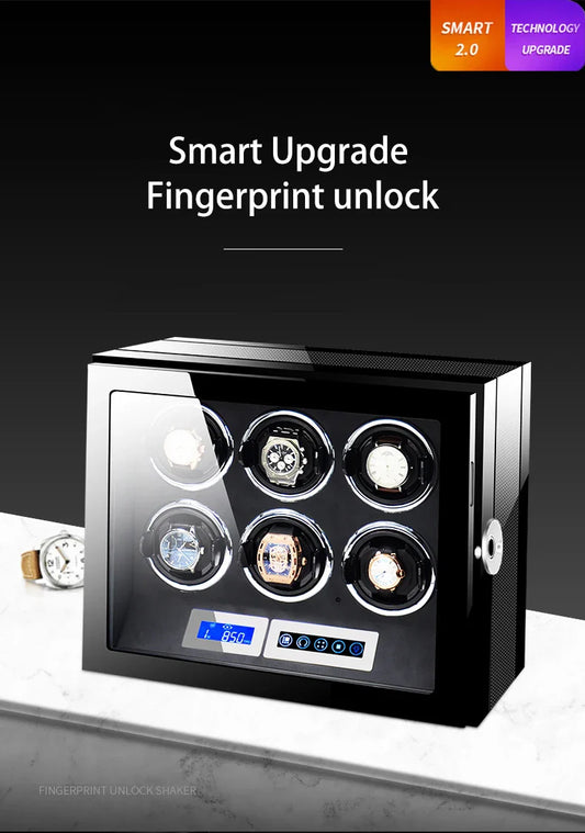 Luxury Fingerprint Unlock Watch Winder with LCD Touch Screen - Automatic Wooden Watch Storage Box