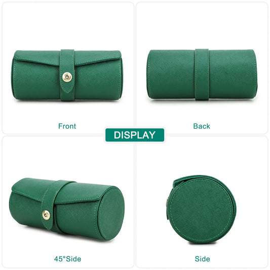 Top Green Saffiano Leather 3-Slot Watch Roll Case - Portable Travel Jewelry Organizer and Gift Box