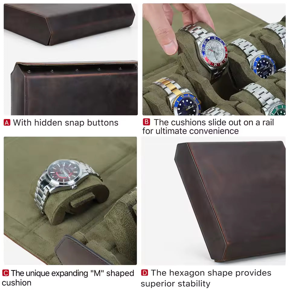 12/16/20 Slots Genuine Leather Watch Box - Luxury Watch Organizer Gift for Men