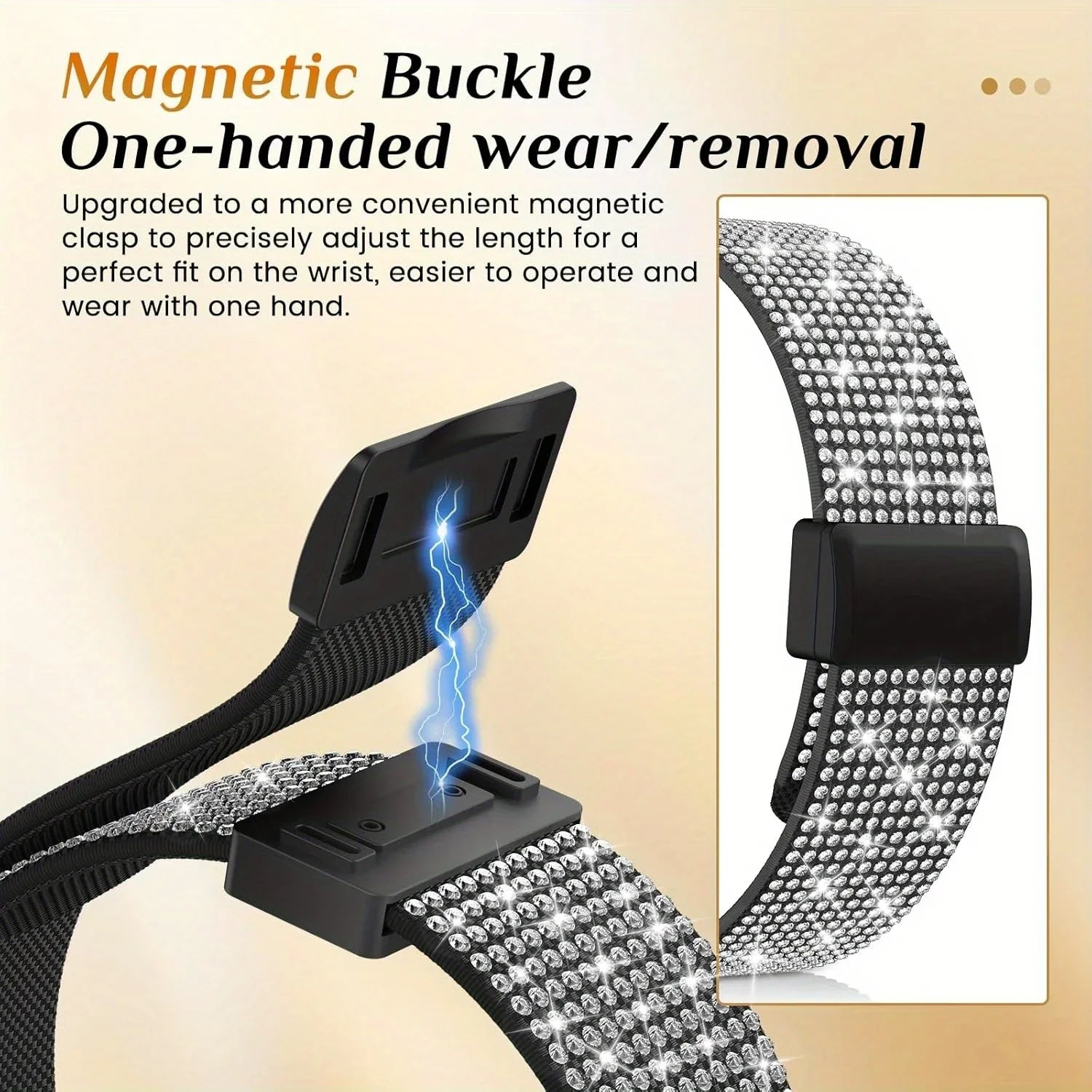 Diamond Bling Nylon Magnetic Bracelet for Apple Watch Ultra3 Band 46mm 45mm 42mm 40mm Series 11/10/9/8/7/6/5/4/3/SE