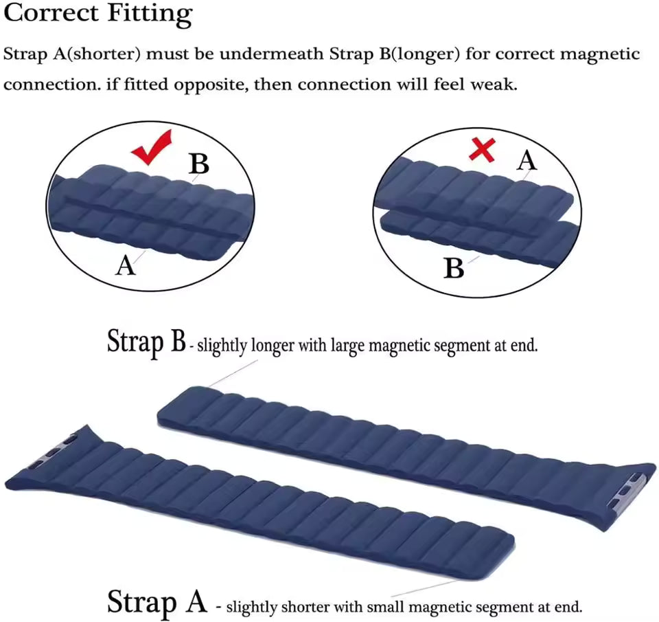 Crafted from high-quality leather, this Apple Watch band offers a clean, refined look that complements any outfit. The strong magnetic closure keeps your watch securely in place while allowing quick and effortless adjustments. Simply snap it on, adjust for comfort, and you’re ready to go—no buckles, no hassle.