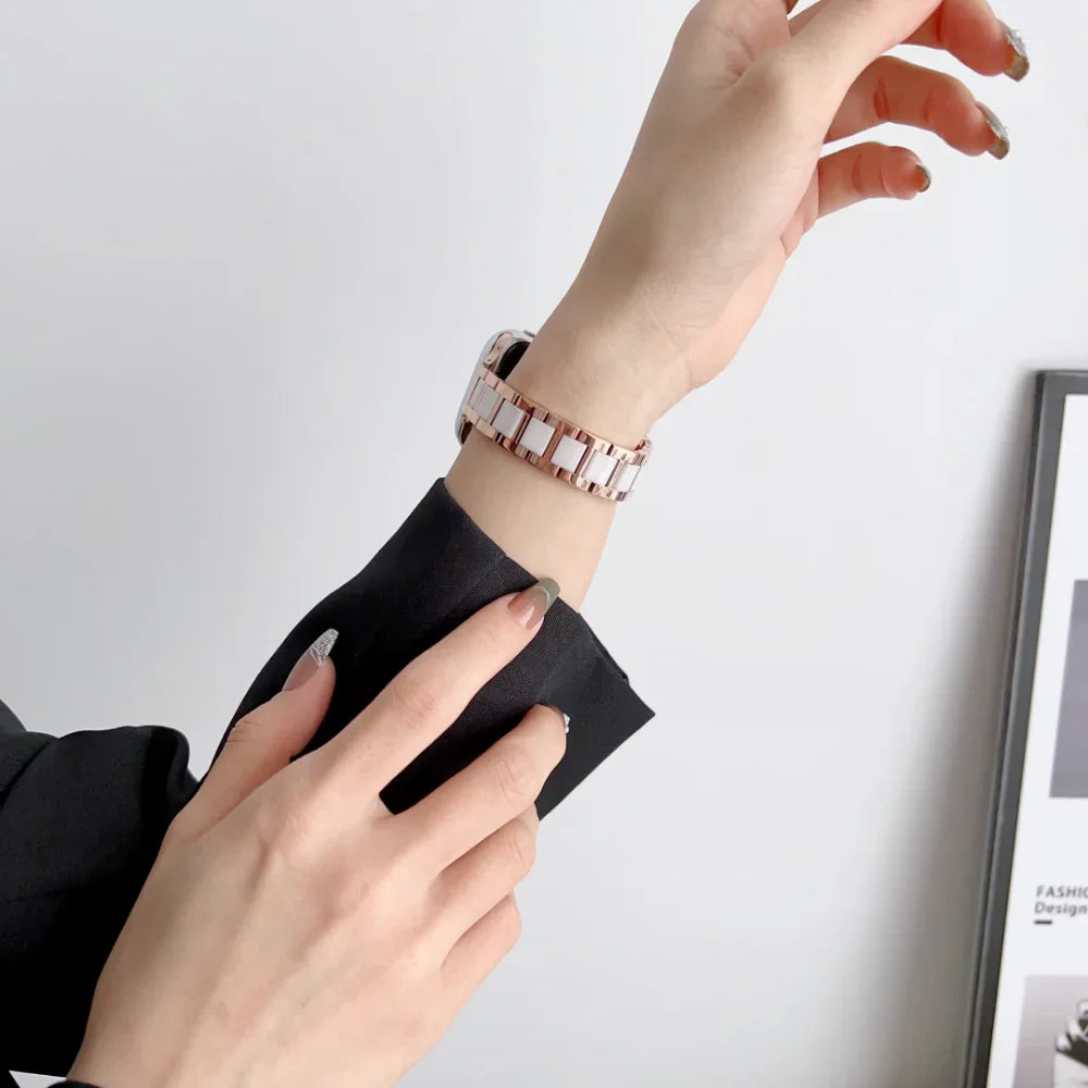 Slim Metal+Ceramic Bracelet for Apple Watch Band Ultra/10/9/8/7/6/5/4/SE