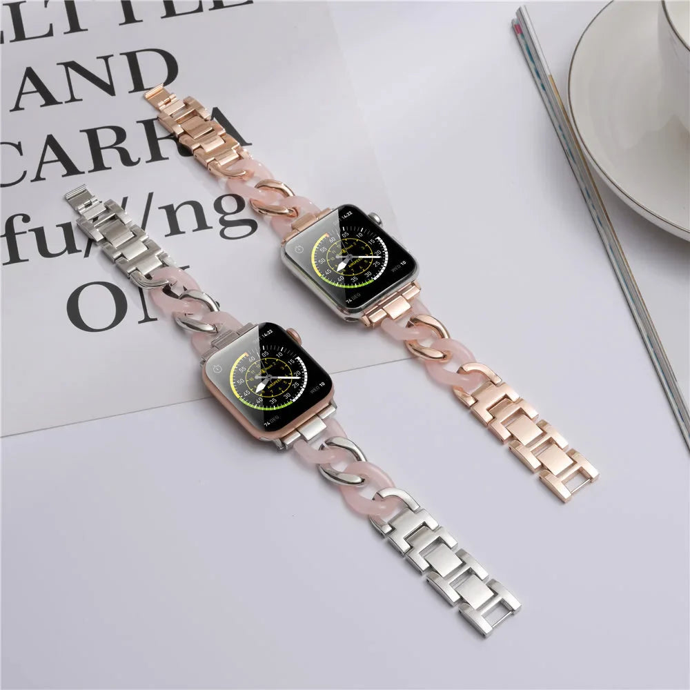 Stainless Steel Resin Link Bracelet for Apple Watch Band iWatch Series Ultra/2/10/9/8/7/6/5/4/3/SE