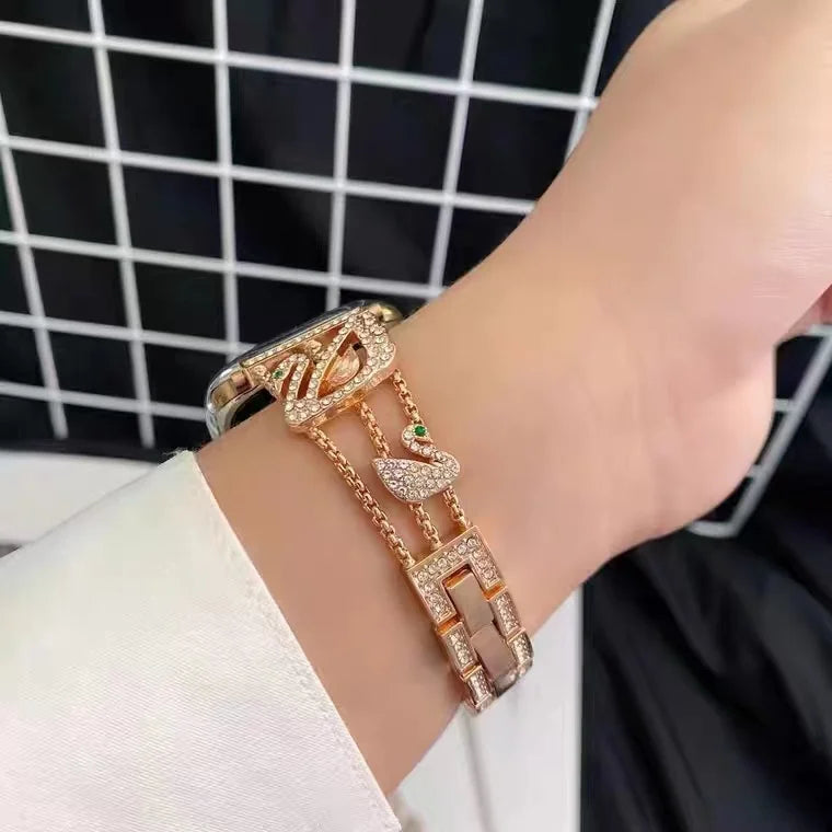 Swan Diamond Stainless Steel Bracelet for Apple Watch Band iWatch Series Ultra/3/2/11/10/9/8/7/6/5/4